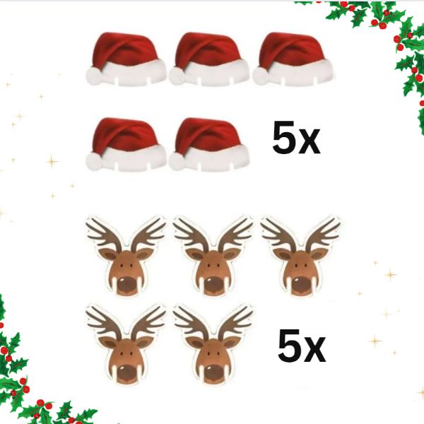Balenie: 10 ks vianočné kartičky na vínové poháre (5x mikulášska čiapka a 5x jeleň)