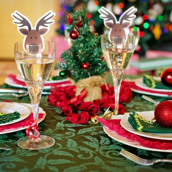 Rozveseľte svoje sviatočné poháre týmito veselými ozdobami na poháre s mikulášskou čiapkou a jeleňom.