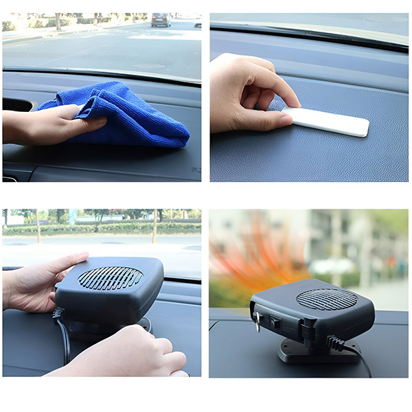 Nie je potrebné žiadne náradie! Jednoducho ho pripevnite na palubnú dosku pomocou lepiacej základne, zapojte do zásuvky zapaľovača v aute a ste pripravení na zimnú jazdu.