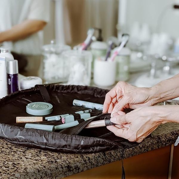 Vychutnajte si bezproblémové skladovanie s taškou GLAMSY. Jednoducho stiahnite šnúrku a zložte vrecko do kompaktnej veľkosti vhodnej na cestovanie. Je ideálne do batohu alebo batožiny a udrží vaše kozmetické nástroje usporiadané a chránené pred poškodením. Vďaka svojej gigantickej úložnej kapacite a pohodliu je toto čarovné puzdro nevyhnutným doplnkom, do ktorého ukryjete všetky svoje potreby na starostlivosť o pleť.