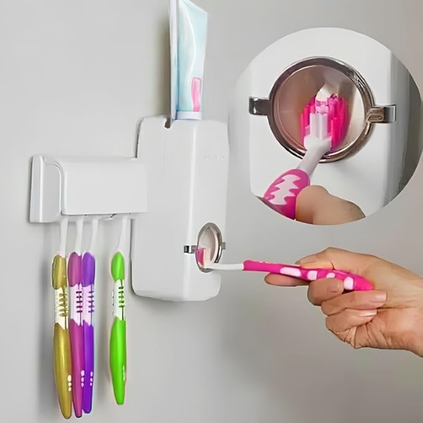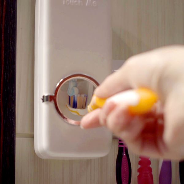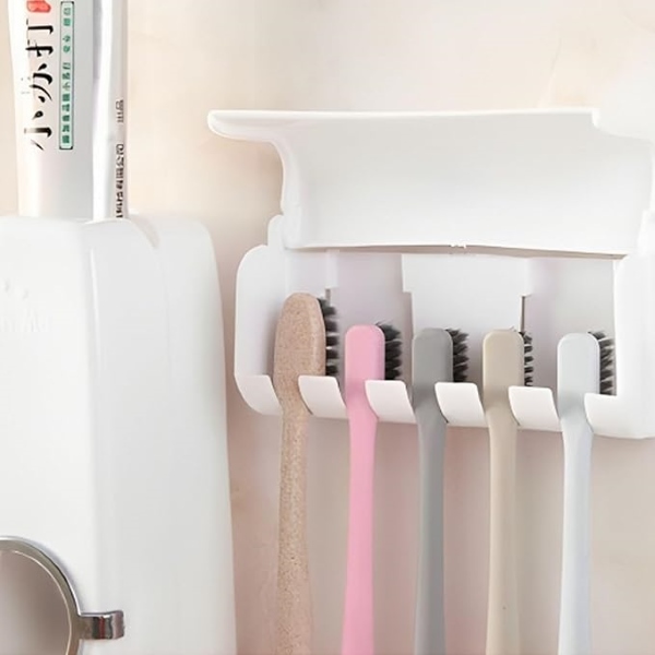 Usporiadajte neporiadok na kúpeľňových povrchoch pomocou našej súpravy samolepiaceho dávkovača zubnej pasty a držiaka zubných kefiek v jednom, do ktorej sa zmestí až 5 kefiek. Dávkujte presné množstvo zubnej pasty a zároveň udržujte zubné kefky hygienické a v suchu!