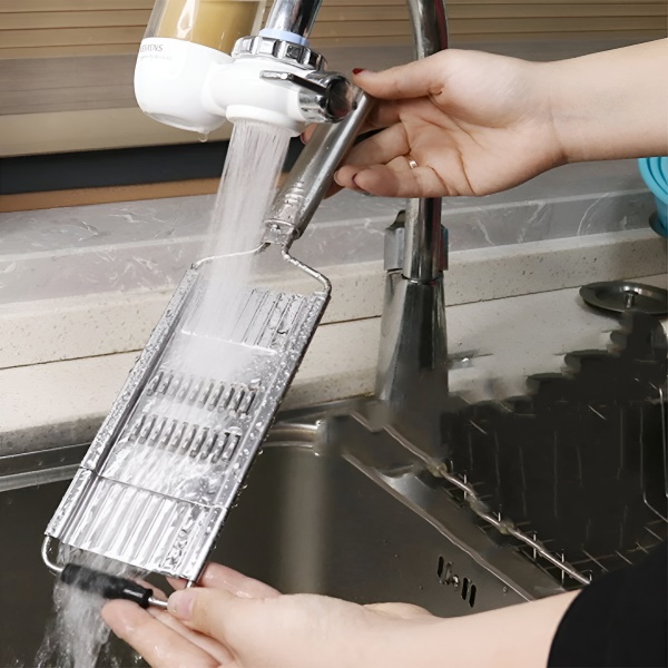 Čistenie je jednoduché – stačí vybrať čepele a opláchnuť ich pod tečúcou vodou. Pomocou kefky odstráňte všetky zvyšky jedla, aby ste zakaždým dosiahli bezchybný výsledok.
