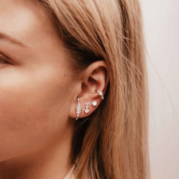 Ako naznačuje názov Bella, táto náušnica vyjadruje nadčasovú krásu a poskytuje očarujúci vzhľad. Má jedinečný tvar a pri nosení sa dá otáčať rôznymi smermi. Náušnica je k dispozícii ako jeden kus a je vhodná na kombinovanie so všetkými ostatnými náušnicami.