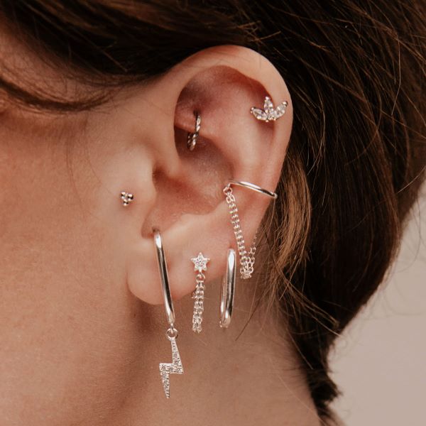 Estella je hravá a atraktívna náušnica, ktorá vždy zanechá stopu. Menšia hviezda s diamantom uprostred je spojená so spodnou časťou dvoma retiazkami, ktoré sú krásnym módnym detailom. Náušnica je k dispozícii ako jeden kus a je vhodná na kombinovanie so všetkými ostatnými náušnicami.
