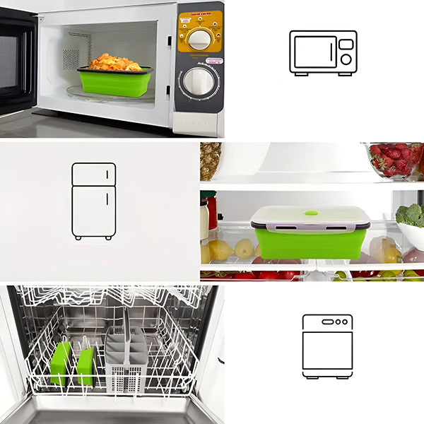 Tieto nádoby sú vyrobené z vysokokvalitného silikónu bez obsahu BPA, vďaka čomu zostanú vaše potraviny čerstvé a bez škodlivých chemikálií.