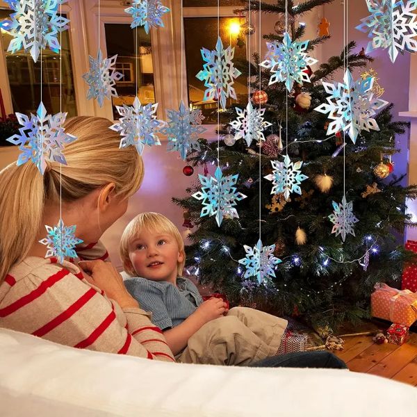 Tieto rôzne veľké trblietavé závesné snehové vločky sú vyrobené z vysokokvalitnej hrubej papierovej lepenky, ktorá spája odolnosť s eleganciou.