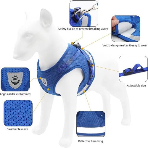 Nastaviteľný reflexný opasok a vodítko pre domáce zvieratá sú vybavené mäkkou, pohodlnou a priedušnou sieťovinou, ktorá zvyšuje pohodlie vášho domáceho maznáčika.