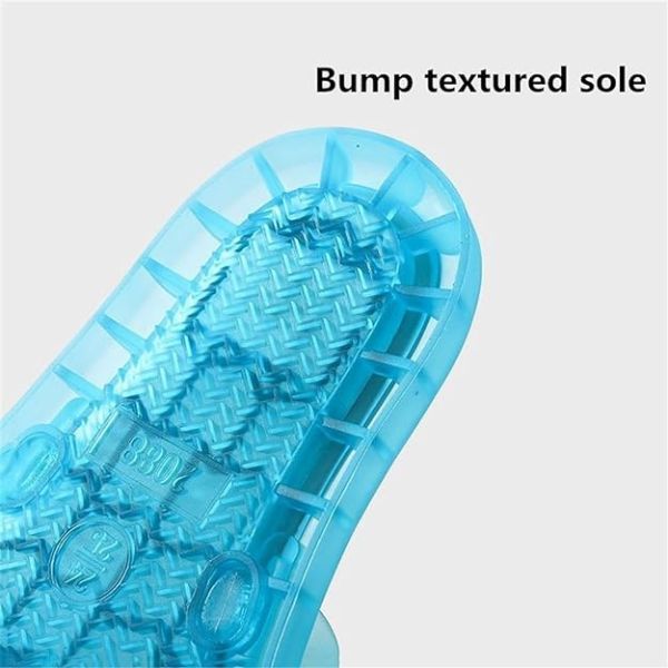 Bezpečnosť na prvom mieste! Naše papuče majú špeciálne navrhnutú konkávnu a konvexnú textúrovanú podrážku, ktorá zabraňuje pošmyknutiu a pádu na mokrom povrchu. Deti môžu behať, skákať a hrať sa s istotou, pretože vedia, že ich nohy sú zabezpečené a chránené pred pošmyknutím na kraji bazéna alebo mokrej tráve.