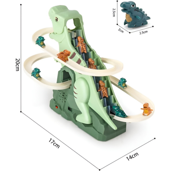 DINOCLIMBER ponúka dinosaurovú horskú dráhu s hudbou a žiarivými svetlami, ktorá vytvára pohlcujúce dobrodružstvo, keď dinosaury lezú po schodoch sprevádzané rytmom a efektmi.