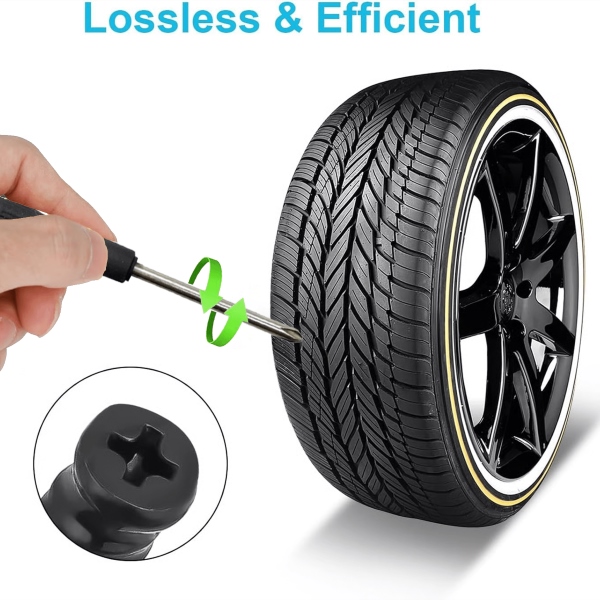 Jednoducho zaskrutkujte gumový klin, aby ste dočasne znížili únik vzduchu pri menších poškodeniach behúňa pneumatiky a bezpečne došli do najbližšieho servisu.
