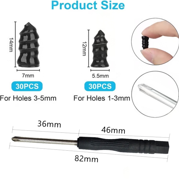 60 skrutiek na opravu pneumatík (30 malých, 30 veľkých)