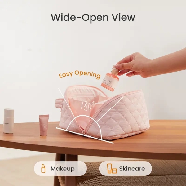 Navrhnutá pre ženy, ktoré milujú krásu aj pohodlie, táto nadýchaná kozmetická taštička ľahko pojme všetky vaše každodenné líčidlá a produkty starostlivosti o pleť, pričom si zachováva svoj tvar a pevnosť.